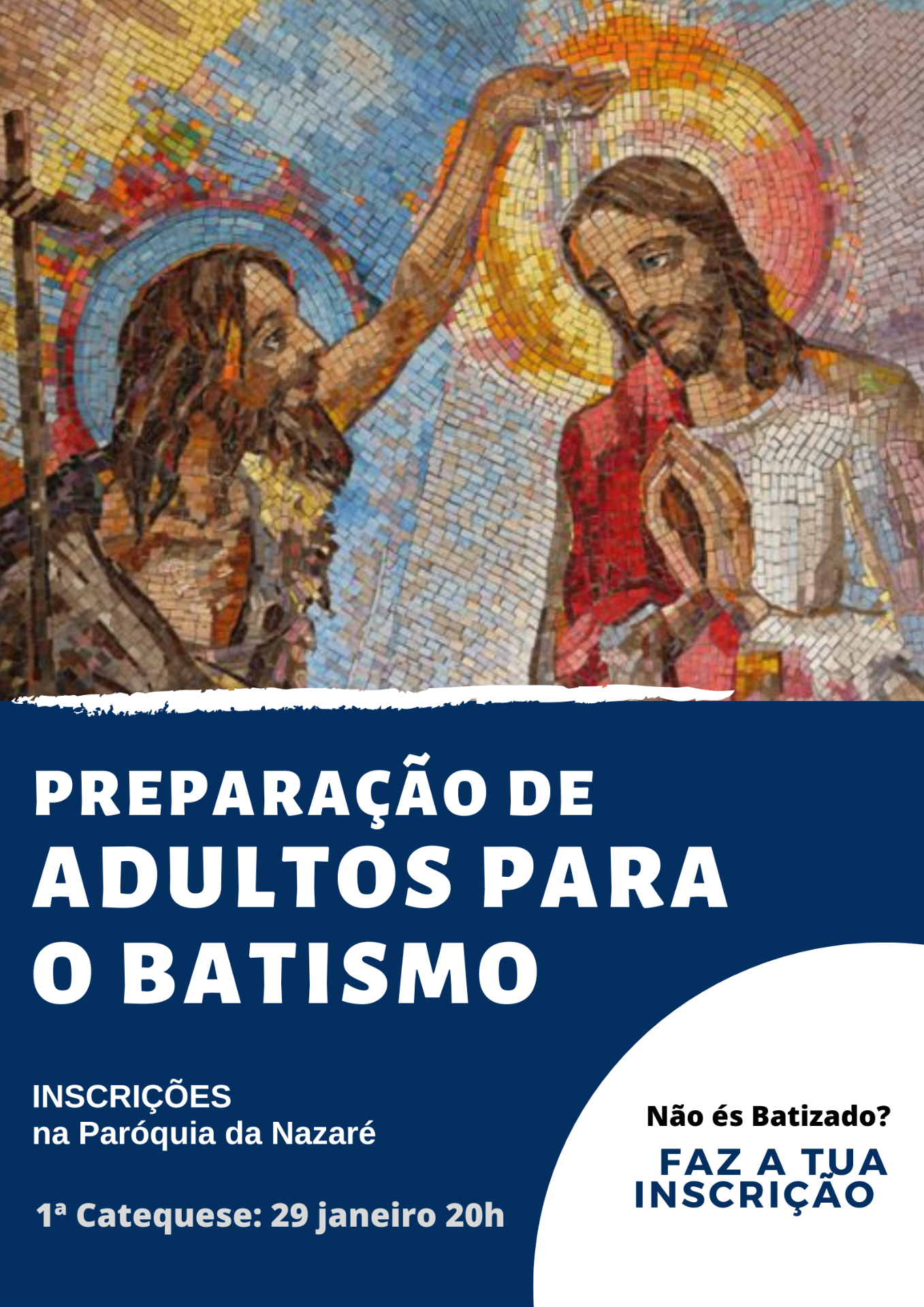 Preparação de Adultos para o Batismo. Faça a sua inscrição na Paróquia da Nazaré.