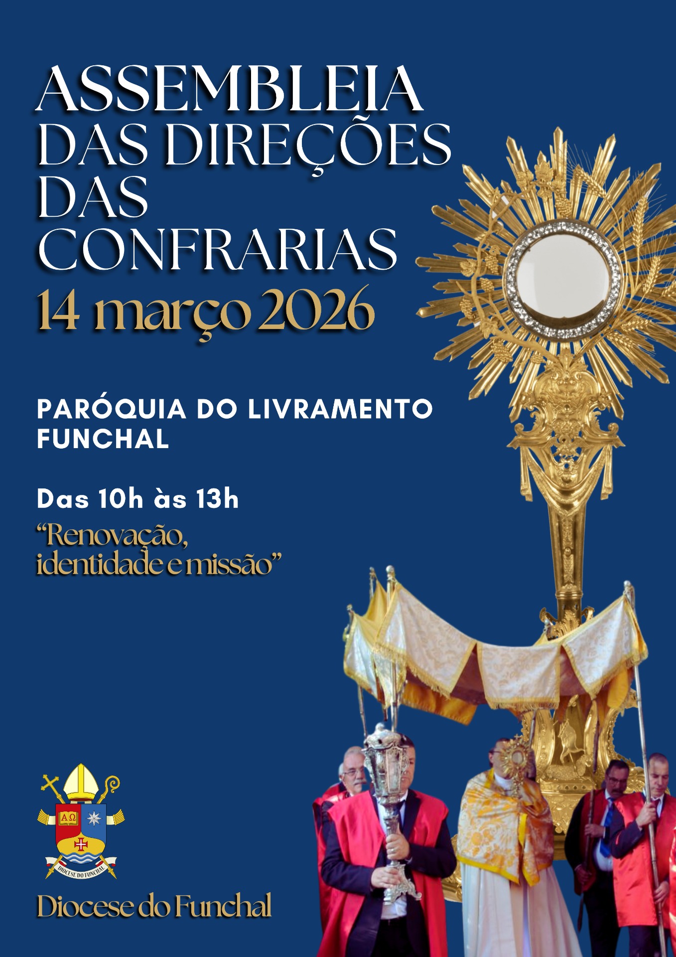 No sábado, 14 de março de 2026, das 10h às 13h, na Paróquia do Livramento (Funchal), a Diocese do Funchal promove uma manhã de encontro, reflexão e formação dirigida a todas as direções das confrarias das paróquias, não só do Santíssimo Sacramento, mas também dos santos padroeiros.