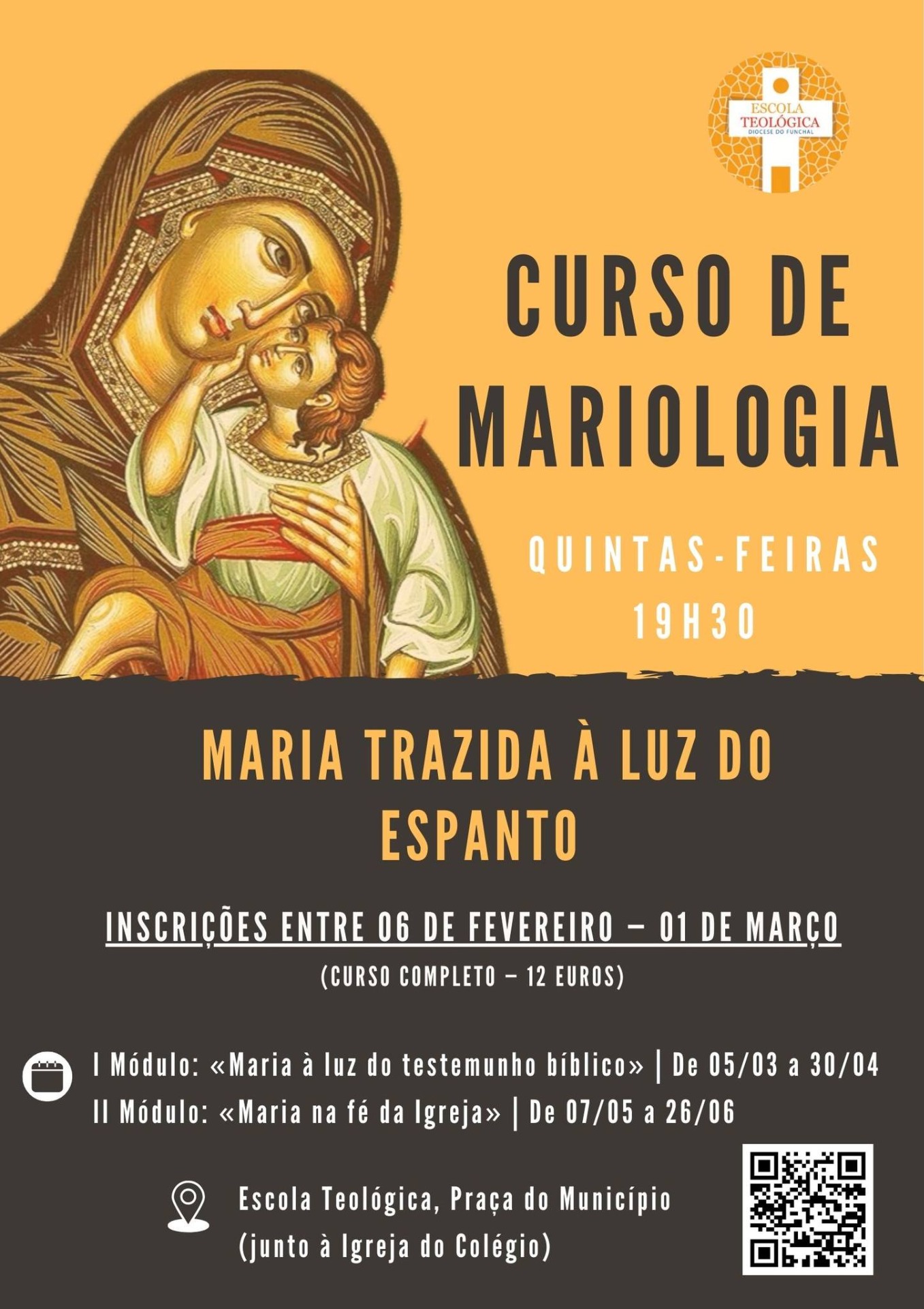 A Escola Teológica da Diocese do Funchal promove, entre março e junho, o Curso de Mariologia "Maria trazida à luz do espanto". A iniciativa surge na sequência das Jornadas de Atualização para os Leigos e Consagrados e em sintonia com o lema pastoral diocesano.