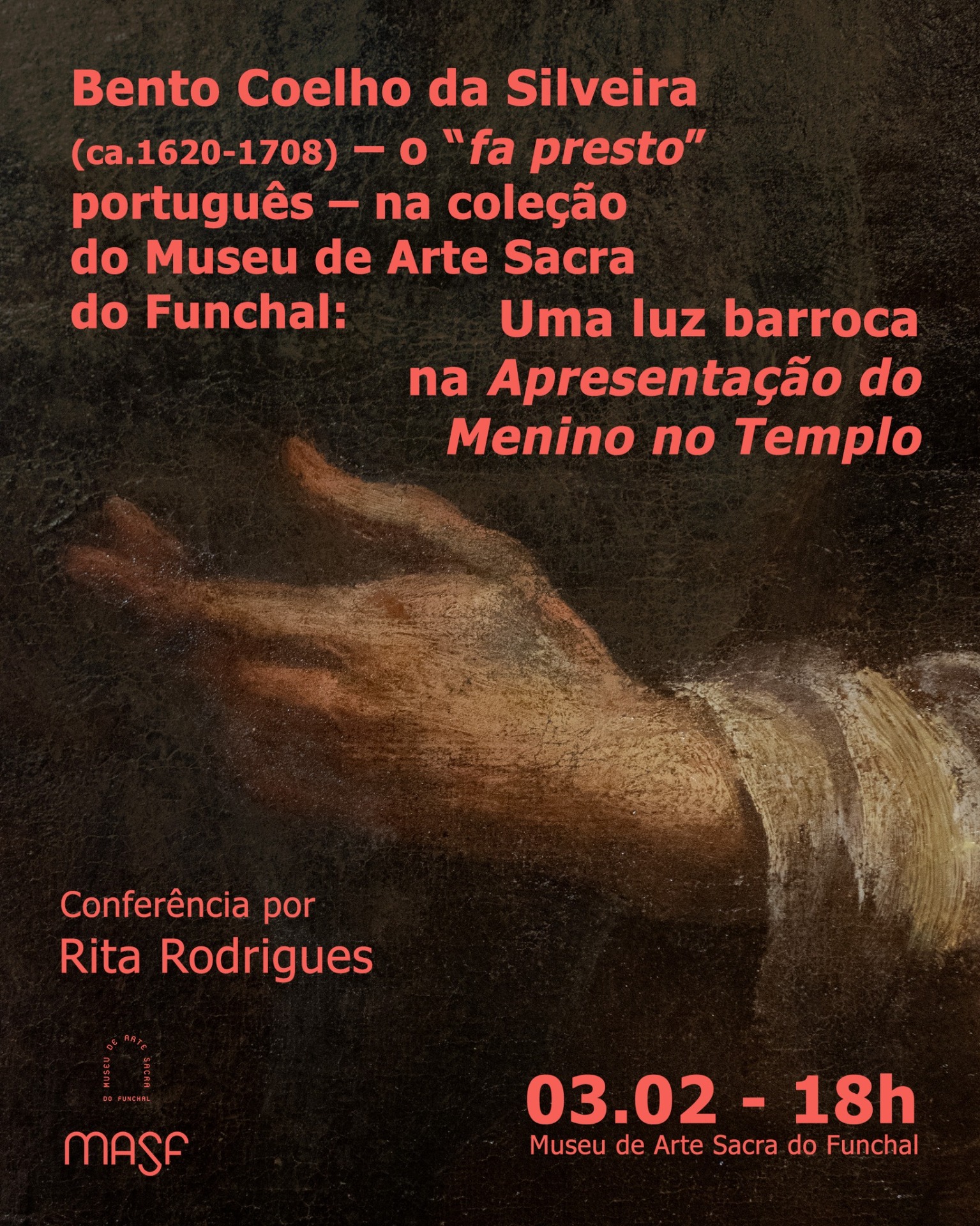 Incorporou, recentemente, no espólio do Museu de Arte Sacra do Funchal uma pintura a óleo sobre tela, atribuída com segurança ao pintor português Bento Coelho da Silveira, representando a temática da «Apresentação do Menino no Templo». No dia 3 de fevereiro, pelas 18h, o MASF recebe a conferência por Rita Rodrigues em torno desta pintura: "Bento...